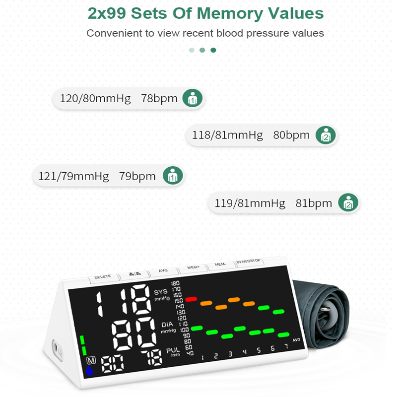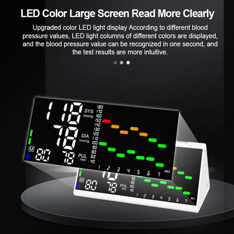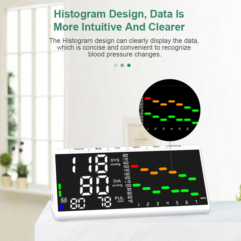 *Dual display on the left is the digital measurement result on the right is to show the blood pressure change trend you can see one day or one week or 3 weekds blood pressure trend.