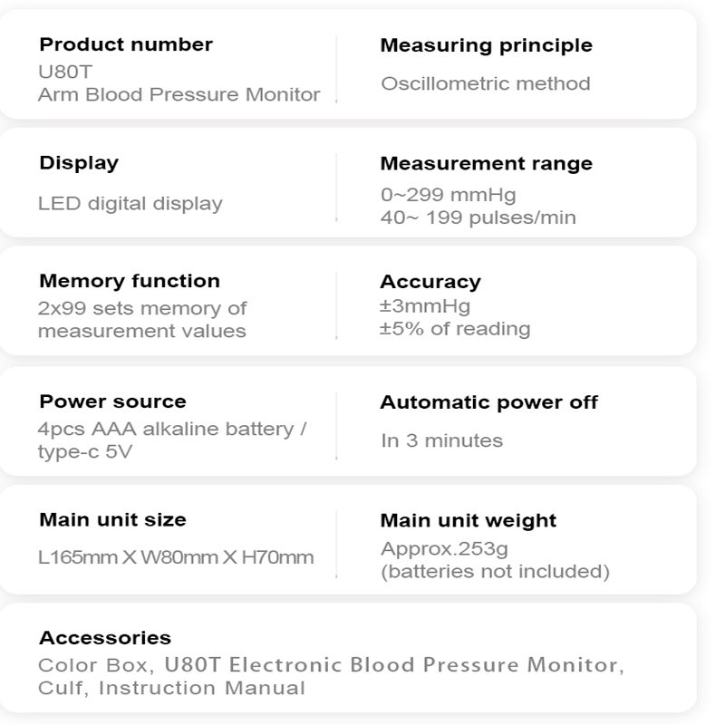 *Accuracy :Pressure +/-3mmHg; Pulse+/-5%.